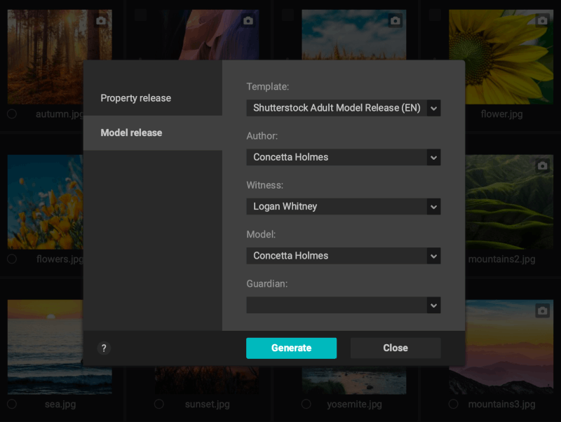 Create model and property releases in three languages. Easily add signatures or visual references.